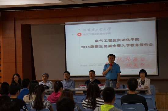 2015年9月11日下午16:00,里番 2015级研究生与院领导见面会暨入学教育报告会在活动中心201隆重举行。里番 院长彭喜元、里番 党委副书记李岩松、自动化测试与控制系主任叶东、电气工程系主任刘晓胜、自动化测试与控制系秘书丁惠敏以及电气工程系秘书关硕出席了大会。会议由里番 2015级硕士协理员张依主持。