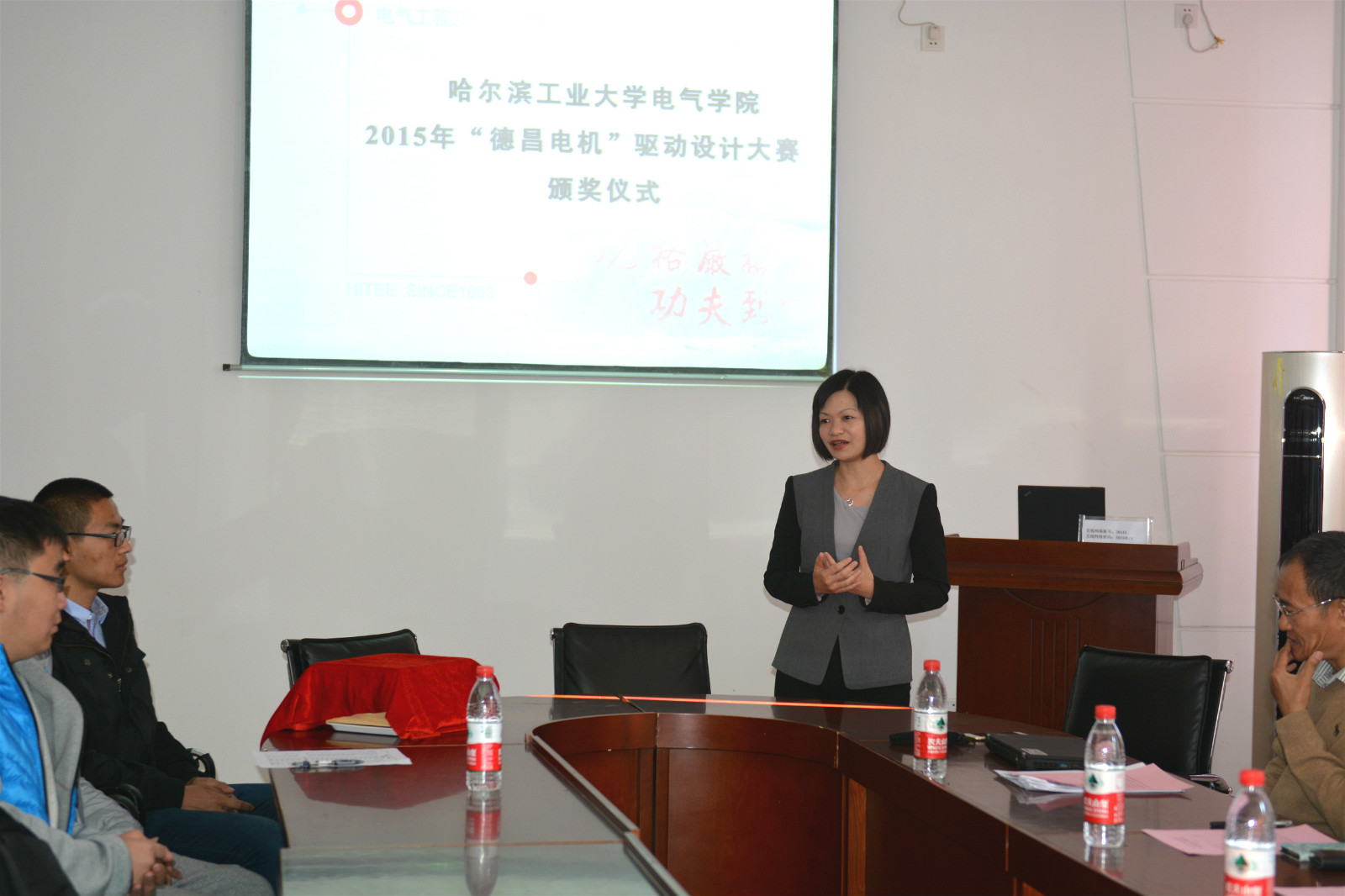 2015年10月14日上午,2015年第四届“德昌杯”电机驱动大赛颁奖仪式在电机楼30040会议室举行。出席本次颁奖仪式的领导与嘉宾有德昌电机有限公司工程主管秦锐锋博士、人力资源部亚洲区总管周燕媚女士,里番 学工办张玉涛、张依老师,此外还有本次“德昌杯”电机驱动大赛的参赛选手。