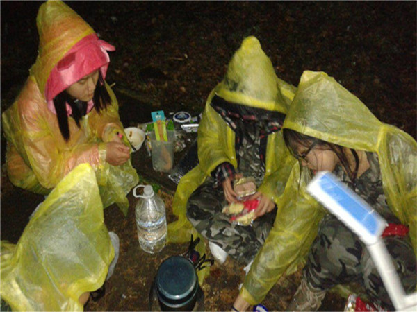 上午十点钟,TEAM全体成员从哈工大一校区出发,下午一点钟到达平山,开始徒步行进。每个人都背着沉重的背包,其中男生人均负重15公斤,女生人均负重10公斤,包内装有各种野营装备,食物,饮用水等等。伴随着蒙蒙细雨,队员们一路向前,欢声笑语,体验与大自然的零距离接触,纵享抛开生活烦恼的愉悦。漫漫平山路,浩浩西泉眼,下午三点半,全体队员顺利抵达露营地点。之后,李岩松老师向大家讲解野外生存技巧及注意事项,指导队员利用气炉和气罐烧水做饭,并收拾场地搭帐篷。虽然一直是小雨淅淅,天气也变得寒冷,但是队员们的热情却依旧高涨;虽然大家在雨中烧水做饭,穿着雨衣吃饭,但是每个人心中都无比喜悦。夜虽然寒冷,可是这并没有给大家的活动带来影响,晚饭结束后,队员们在帐篷里休息,体验着一天疲劳之后游戏带给大家的欢乐。