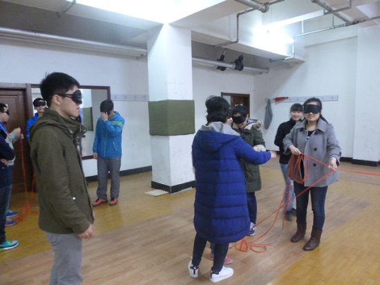 素质拓展正式开始后,全体参训学员被分成了9支队伍。在TEAM培训人员的组织下,各队选拔出了队长、确定了队名、成员代号、团队口号。随后,各队开始了今天的素质拓展训练。在活动中,大家分别进行了“蒙眼睛搭房子”、“泰坦尼克号”、“两人三足”等多个项目。看似简单的培训项目,却蕴含着深刻的道理。同学们在培训过程中,增进了彼此的信任感,增强了沟通能力、领导能力和团队合作能力。与此同时,在每一项训练项目完成后,培训人员都会向大家分享感悟、畅谈心得。经过短短一个上午的拓展训练,学员纷纷表示受益匪浅。