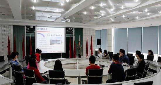 来到博实自动化股份公司以后,人力资源部李真真副部长热情的接待了我们,她为了使同学们对博实公司有一个初步的了解,带领同学们来到公司的会议室,通过PPT向大家介绍了公司的建立、发展、壮大的一系列过程,并阐述了公司未来的发展方向以及企业规划等。,通过,李真真部长的详细热情的介绍,同学们不仅感受到了博实自动化股份公司在全国石化化工后处理成套设备的研发的领先地位,也了解到博实股份公司的董事长以及多位高层领导都是哈工大的校友,为此同学们感到无比自豪。