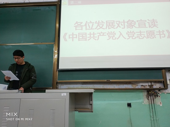 会议开始,郭效让同学介绍了本次会议的主要内容。首先,全体党员齐声高唱国歌。随后进行会议第二项,全体2017年秋季学期接收为党员的同学逐一上台再次阅读志愿书,重温入党的光荣时刻。进行会议第三项,全体支部党员重温入党誓词。在坚定有力的宣誓声中,全体党员心中无不骄傲澎湃。接着进行会议第四项,由郭效让同学对2017年度支部工作进行述职汇报,他从支部工作、支部活动、党员发展等进行了逐一汇报,并希望全体党员能在新学期权全力支持配合党支部工作,在新的一年里能过做好做实规定动作,做新做活自选动作。在热烈的掌声中,会议进行第五项,由郭效让同学组织全体同学进行民主评议党员工作,全体同学在教室内认真完成了自评和互评。评议结束后,董文卓老师就支部工作规范和相关规定对全体党员进行了说明和要求,最后全体党员齐唱国际歌,本次生活会也在高昂的歌声中结束。