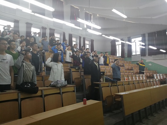 会议开始,郭效让同学带领全体毕业生党员进行承诺践诺宣誓。铿锵有力的宣誓声中,支部学生党员将牢记党员身份,履行党员职责,与新时代同向同行,以良好的精神状态,良好的学习习惯,为祖国做出贡献。随后,支部党员集中观看学习了习近平总书记在五四大会上的讲话,郭效让说道,希望各位党员同学按照宣誓内容,谨遵习近平总书记嘱托,认真开展践诺工作,在践诺中创造佳绩、当好表率,确保“承诺”在心,“践诺”在行,不断提高党员责任意识,立身为旗,把承诺践诺当“军令状”常思,当“正衣镜”常照,落实在点滴,践行在路上,在承诺践诺中推动真学实做落地。